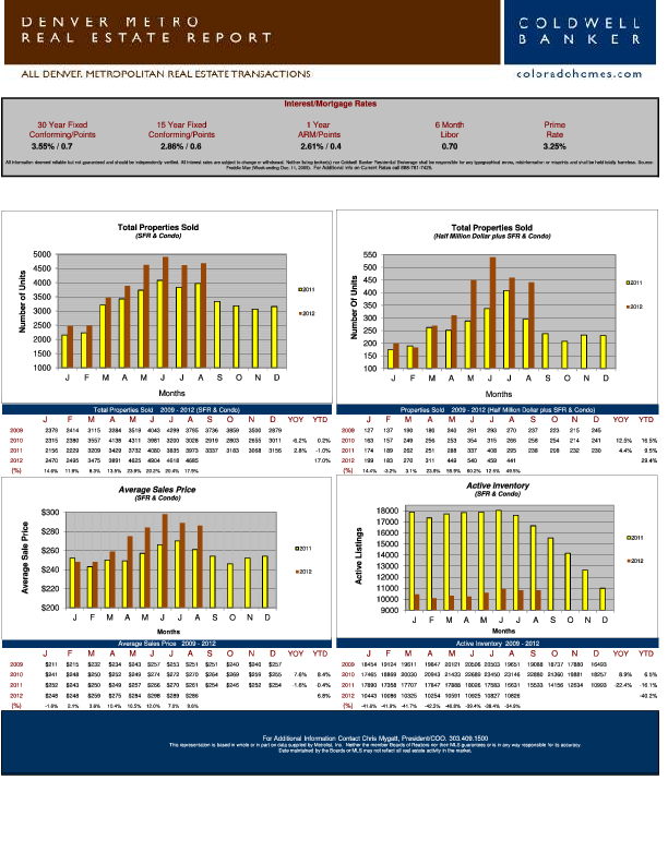 Continued improvement. The average sales continues to rise, with August at $286,000. Up 9.6% compared to last August. The number of properties sold up 17.9% compared to last August. Our low inventory continues to make properties that are priced right and show well go quickly. The average days on market for August was 64. Overall, our market is up 17% for number of properties sold compared to last year. With mortgage rates still low, its a great time to be in the market for a new home. For a complete report, click here: August 2012
