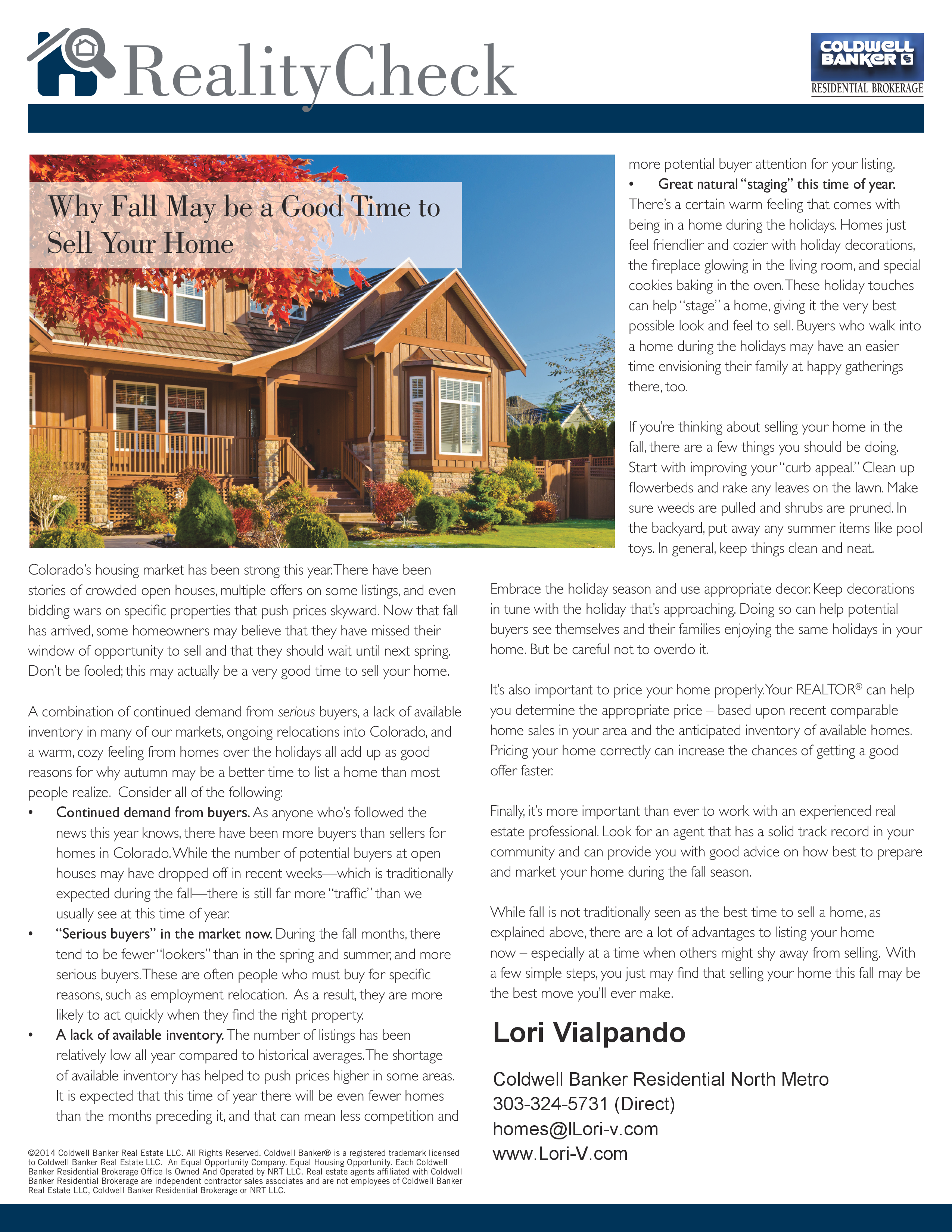 Posted on October 23, 2014October 23, 2014 by Lori Vialpando***Why Fall May Be a Good Time for Denver Sellers *** Share this:Share Click to email a link to a friend (Opens in new window) Email Click to share on Facebook (Opens in new window) Facebook Click to share on X (Opens in new window) X Click to share on LinkedIn (Opens in new window) LinkedIn Click to share on Pinterest (Opens in new window) Pinterest Like Loading... Related