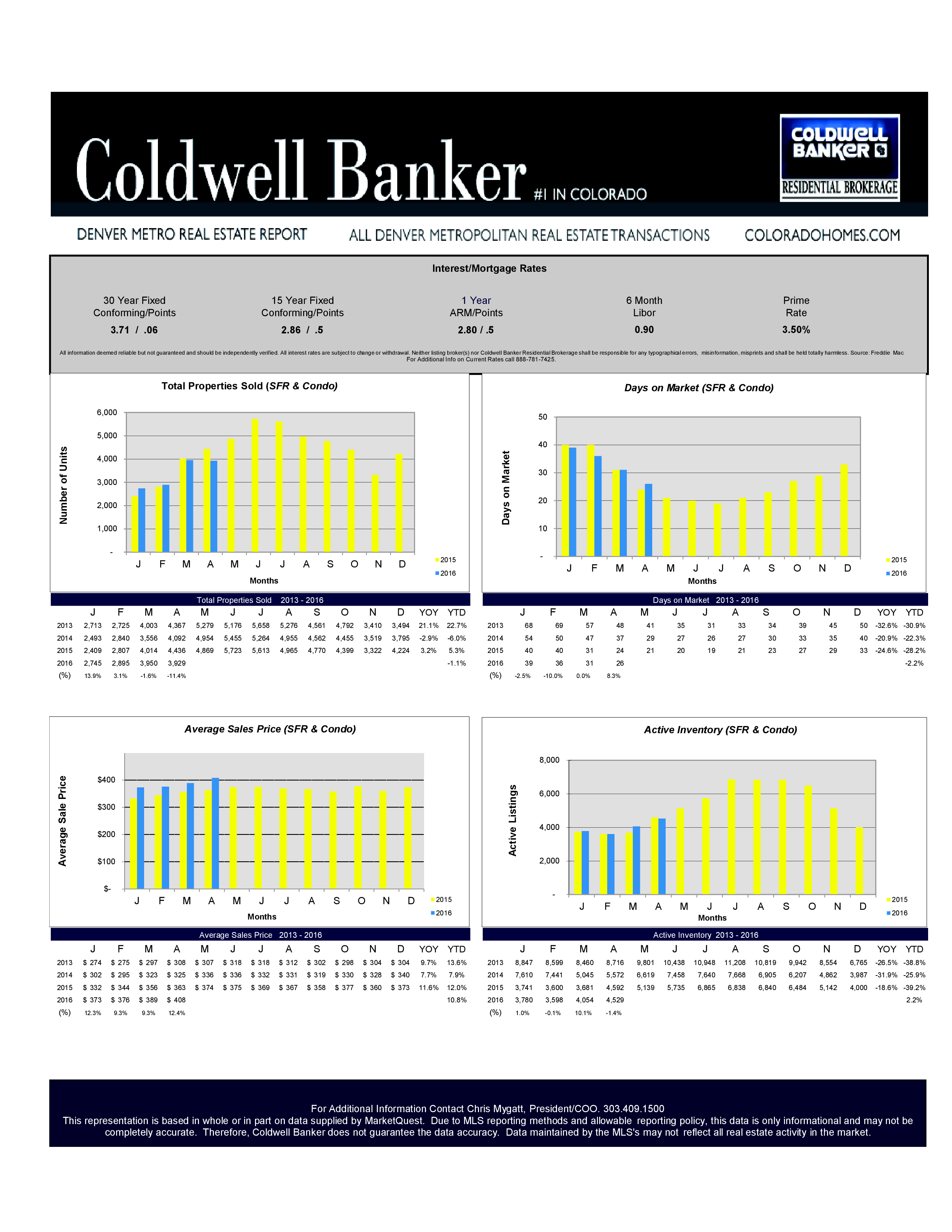 April 2016, the highest average sale price in Denver we have seen at $408,000 – BUT we are also seeing inventory increase slightly.