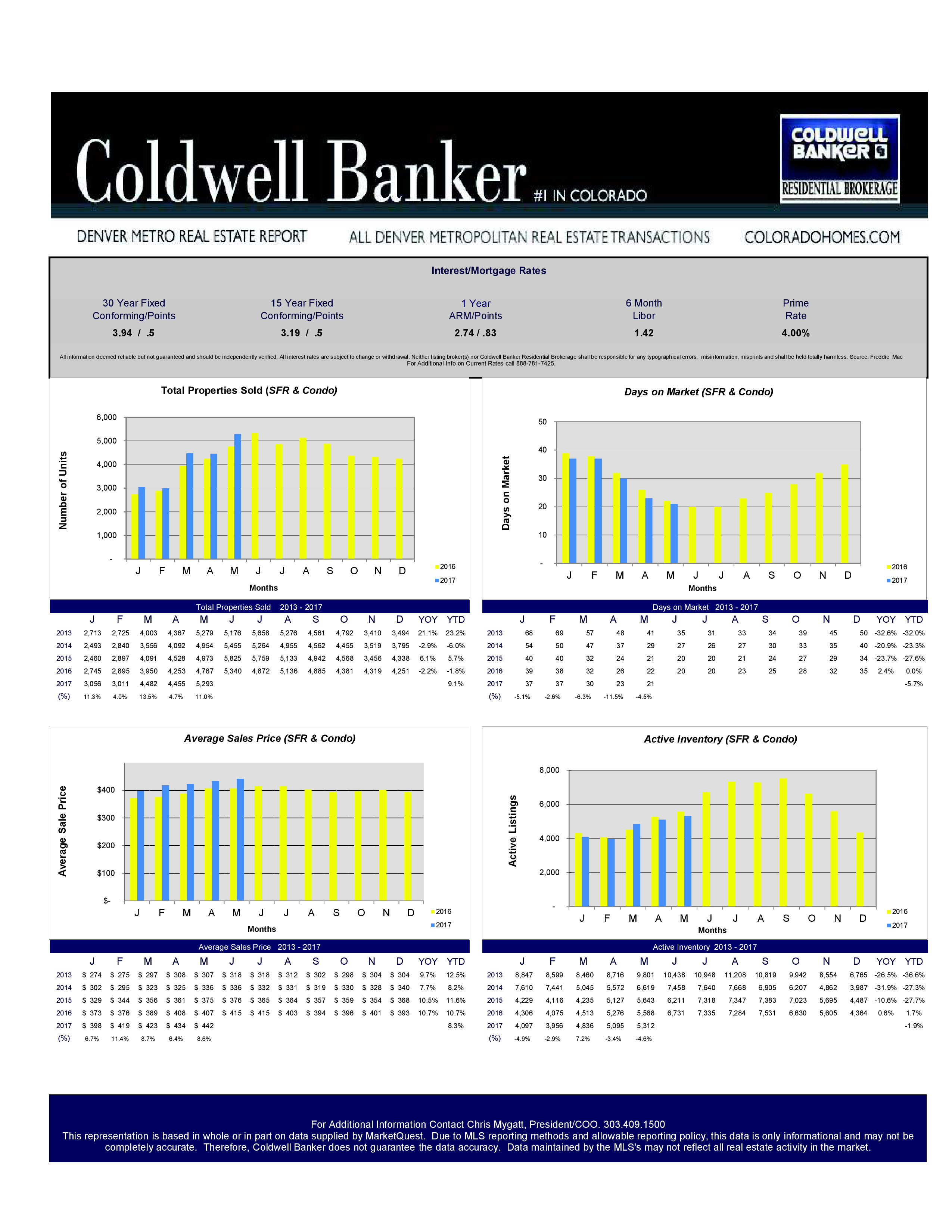 - The average sales price in Denver was$442,000 ($434k previous month, $407k last year same time)
