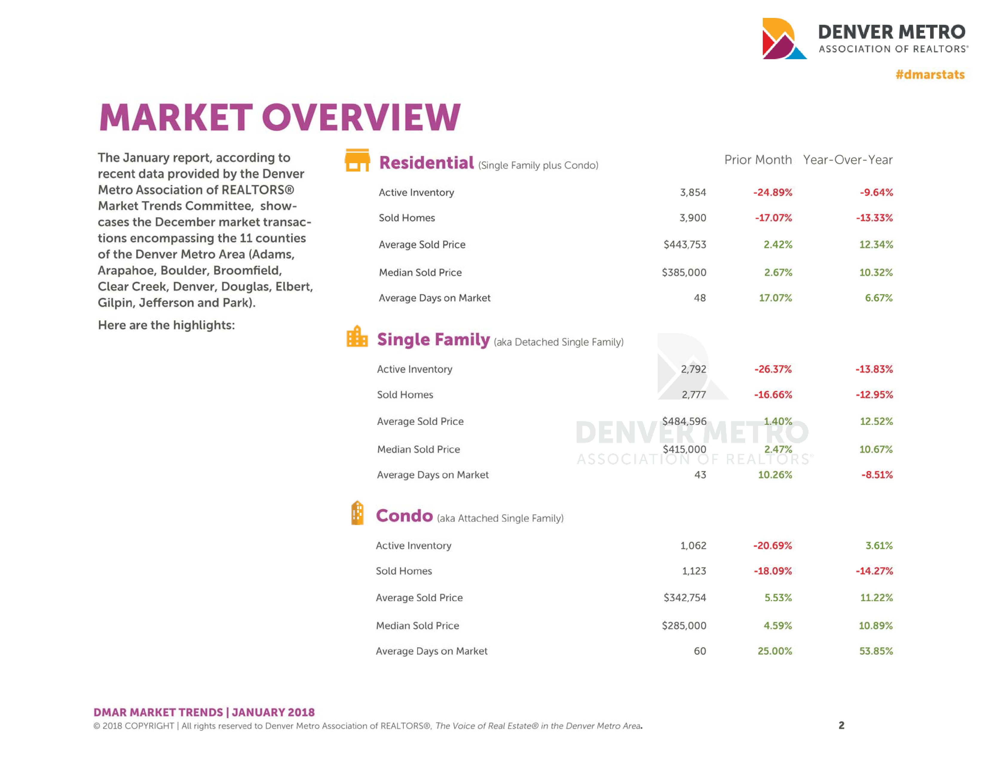 Super low inventory, increased sales price, and fewer homes sold during what is typically a slower month of the year.