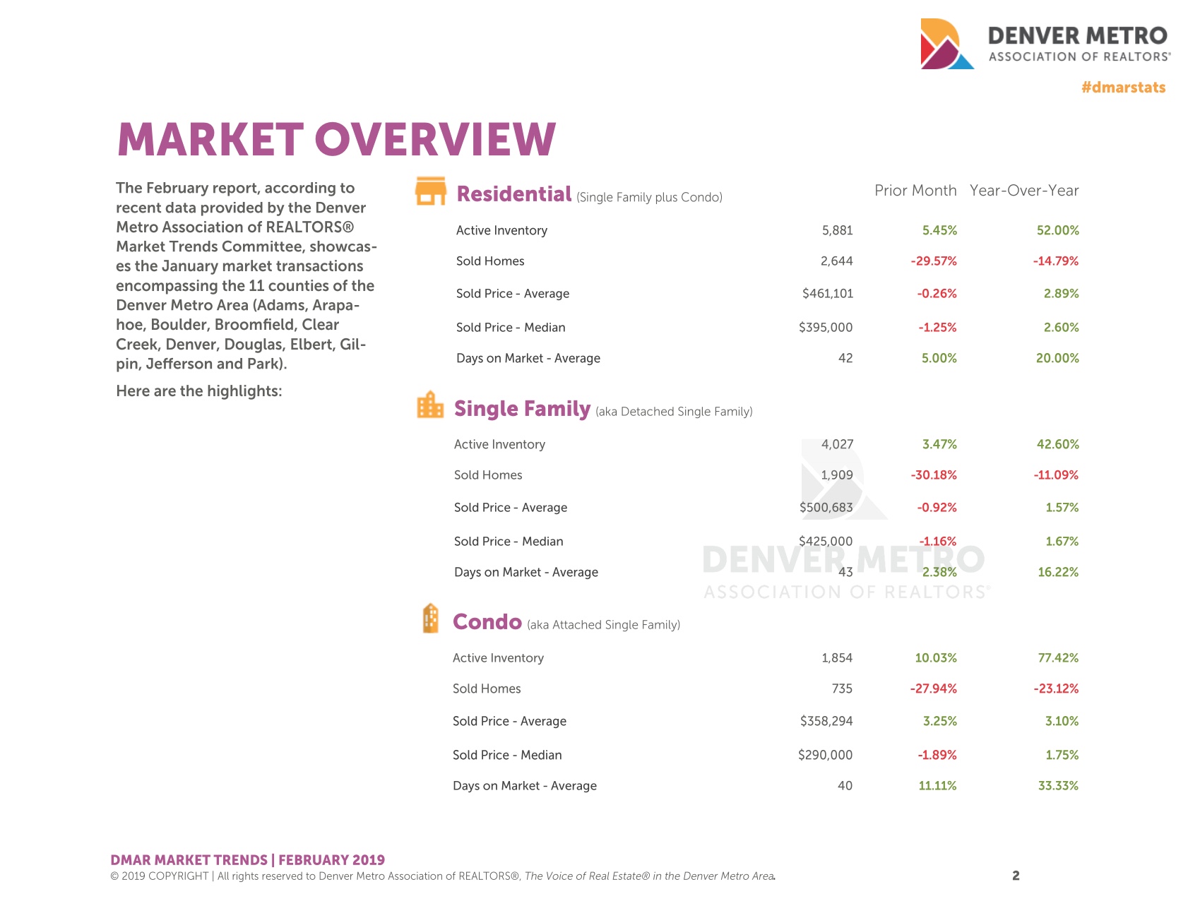 Here’s a quick peek at what happened during the month of January in the Denver real estate market.