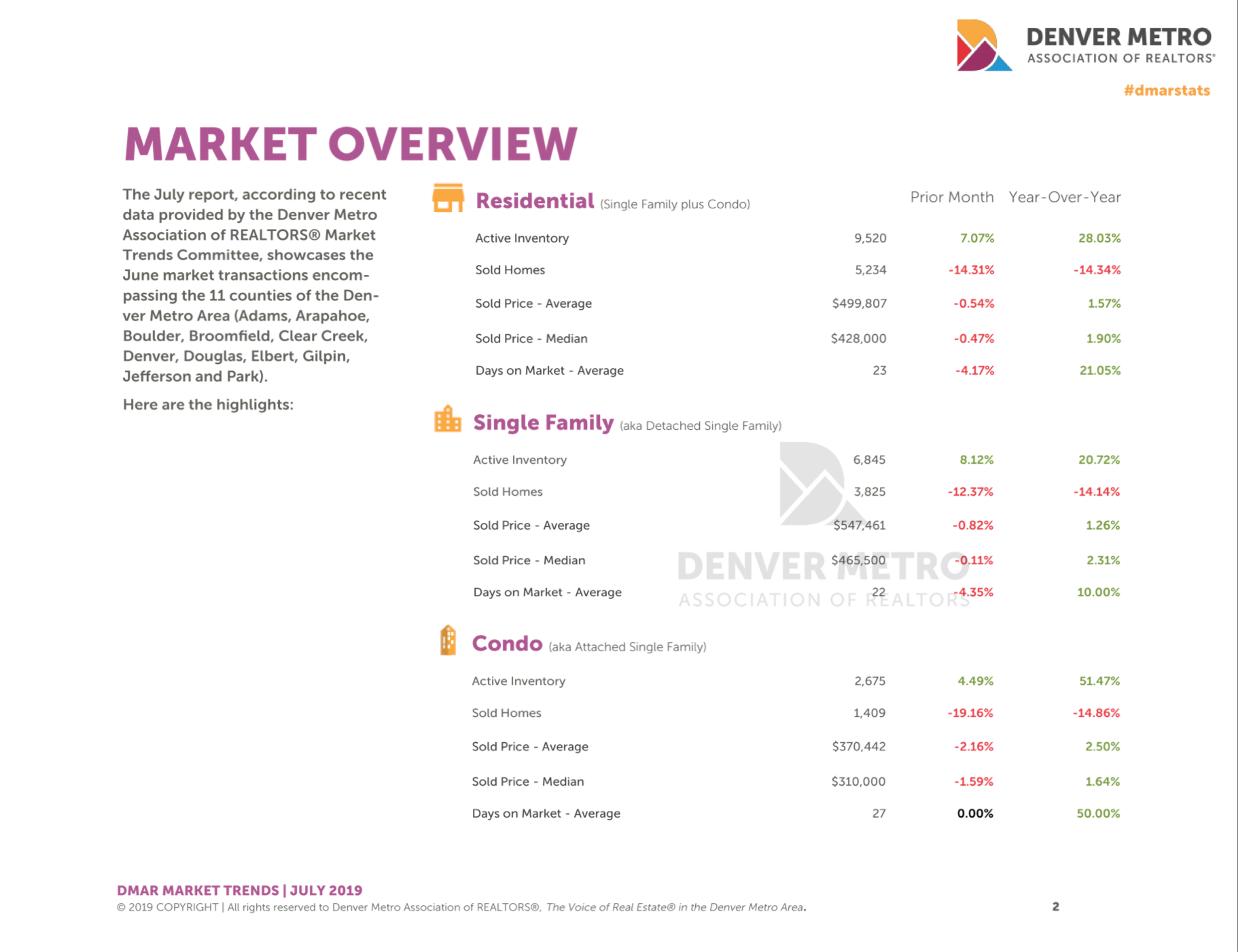 Here’s a quick peek at what happened during the month of June in the Denver real estate market.