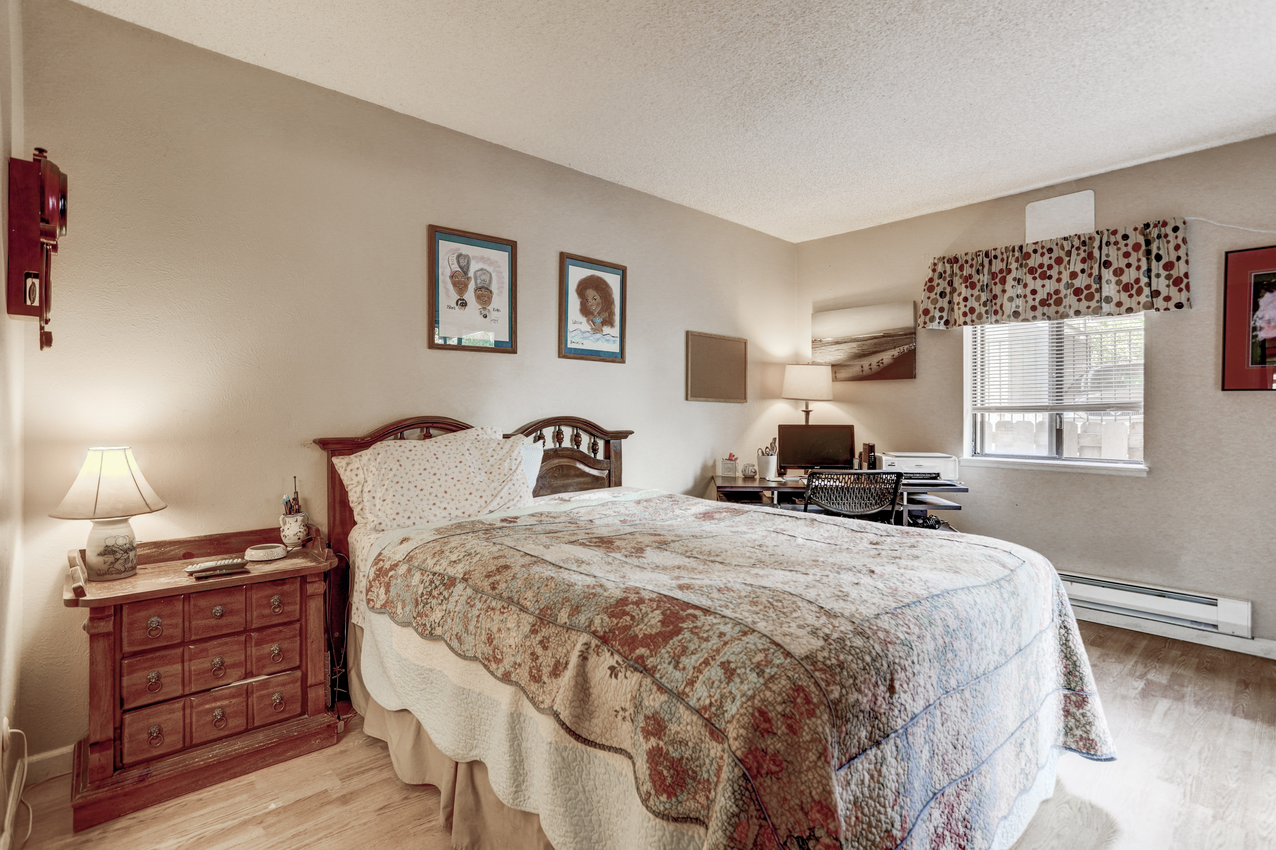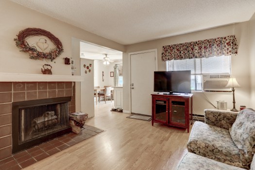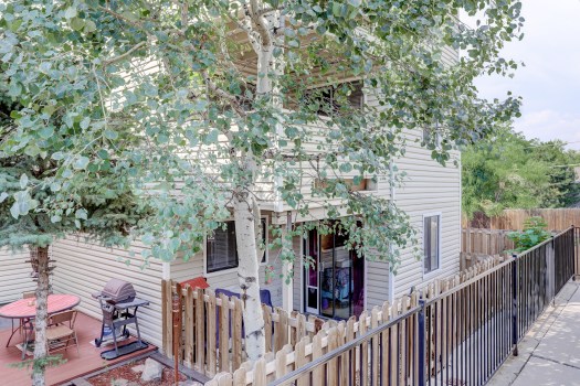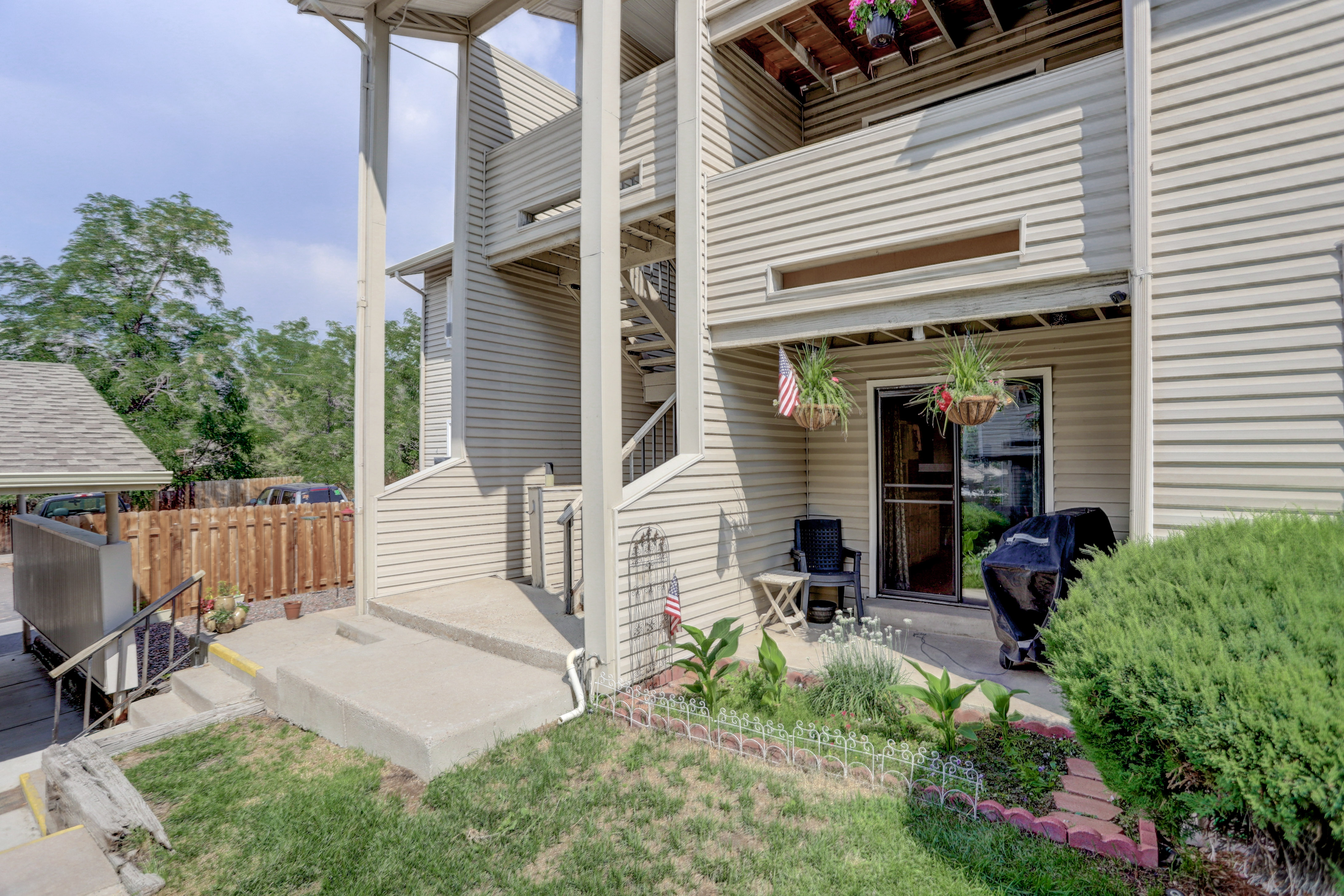 What a location! Amazing opportunity super close to Olde Town Arvada shopping, dining, & light rail! Ground floor unit with a finished basement! Clean unit ready for your own personal updates! 3 bedrooms / 2.25 baths with 1403 finished sq ft. Cozy wood fireplace in living room, large dining room with front patio for BBQ. Large master offers vanity & private fenced covered patio area. Main floor second bedroom with large closet. Laminate flooring throughout the main floor. Finished basement has large 3/4 bath, laundry area, bedroom, & additional living room/flex room. Carport space included with plenty of guest parking. Community clubhouse. Just across the street from Memorial Park with frisbee golf & access to Ralston Creek trails.