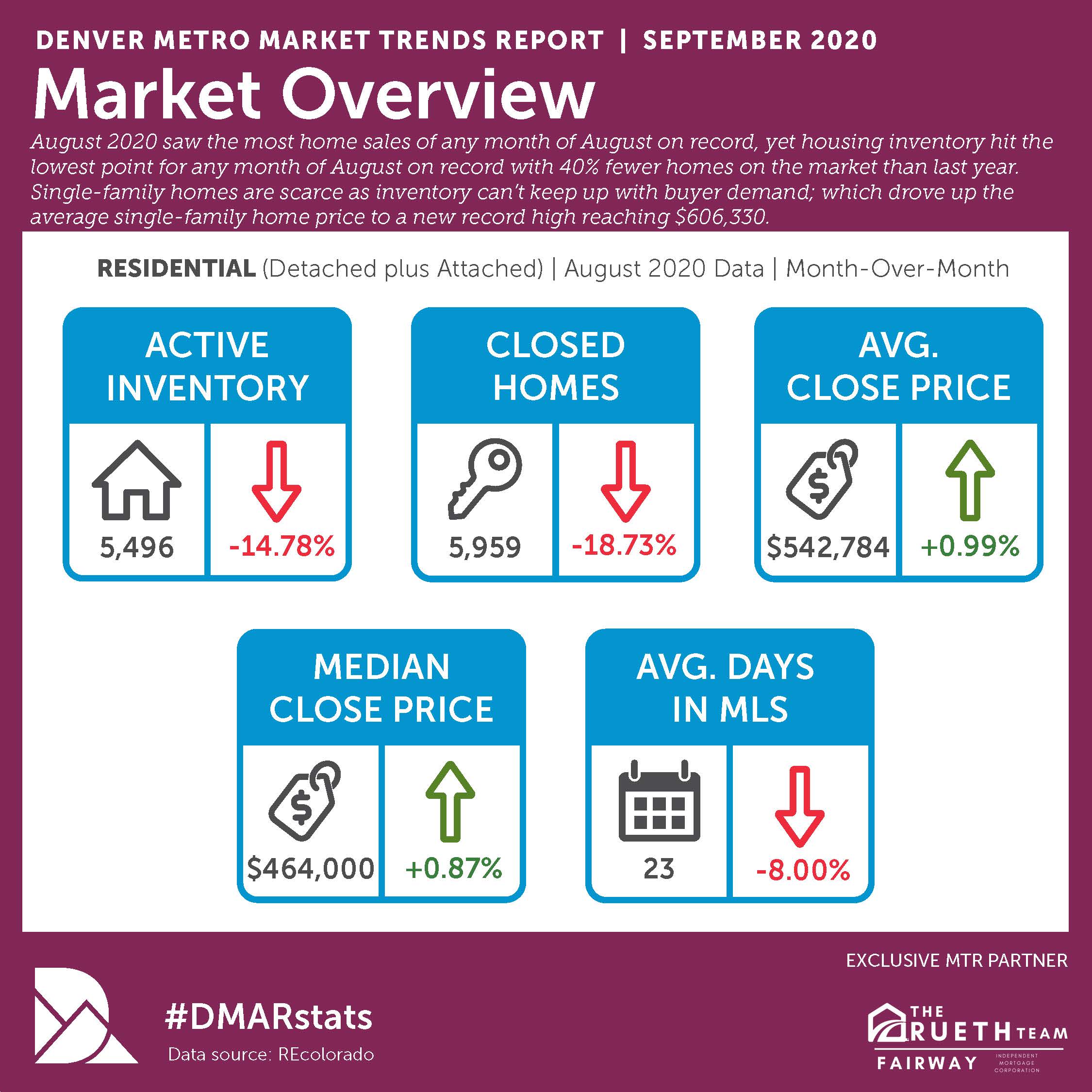 Here’s a quick overview what happened during the month of Aug in the Denver real estate market.
