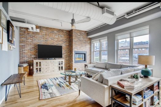 - beautiful gas fireplace & exposed brick