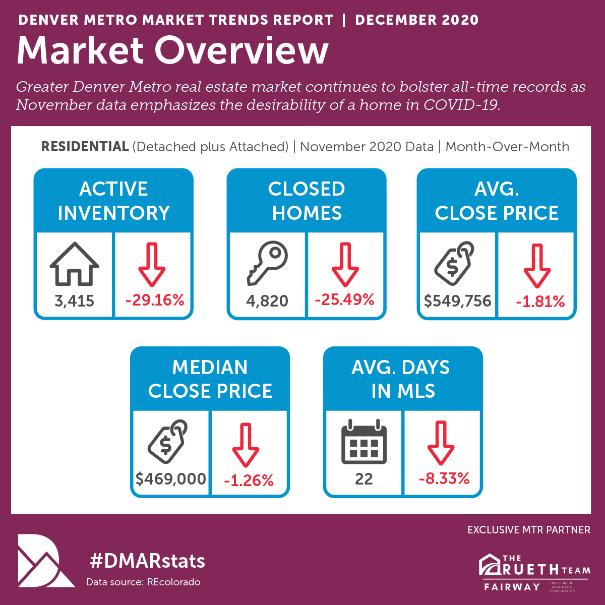 Here’s a quick overview what happened during the month of November in the Denver real estate market: