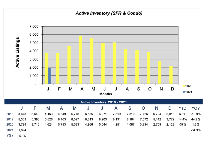 Here’s a quick peek at what happened during the month of January in the Denver real estate market. I have included the inventory portion of the stats, as that is our biggest problem in the Denver metro area. MORE buyers than what is listed out there. Almost HALF of same inventory we had last year in January!