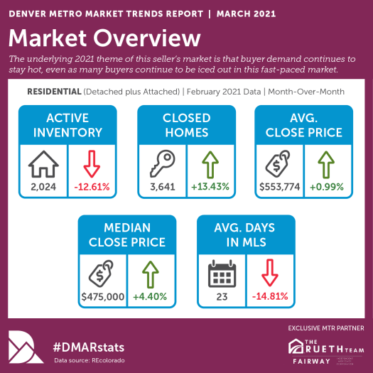 Here’s a quick overview what happened during the month of February in the Denver real estate market: