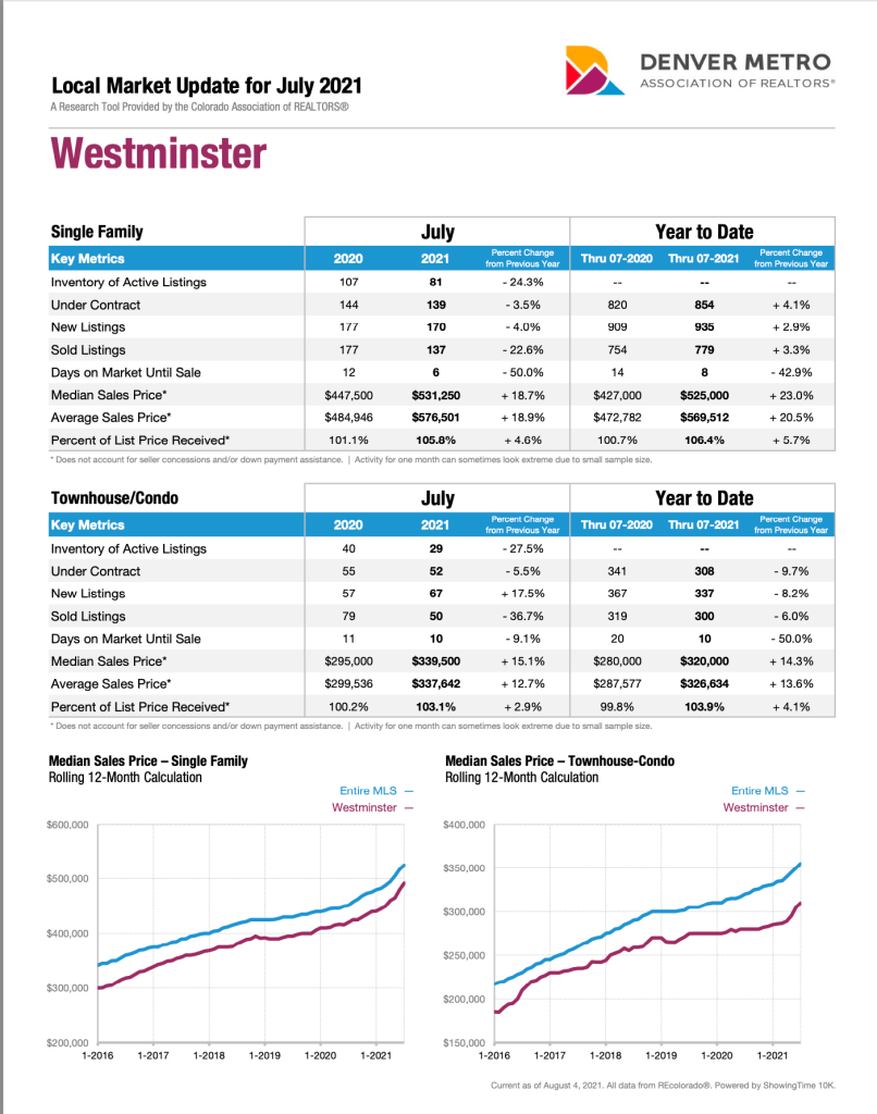 Here’s some real estate stats specifically for Westminster, Colorado!