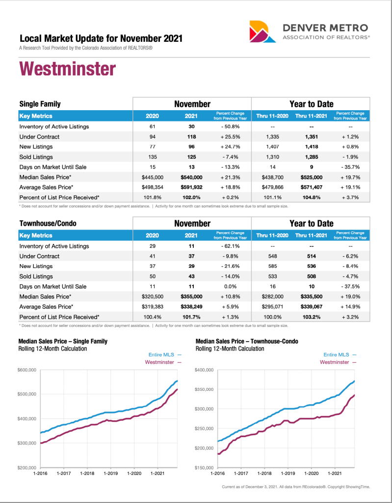 Here’s some real estate stats specifically for Westminster, Colorado!