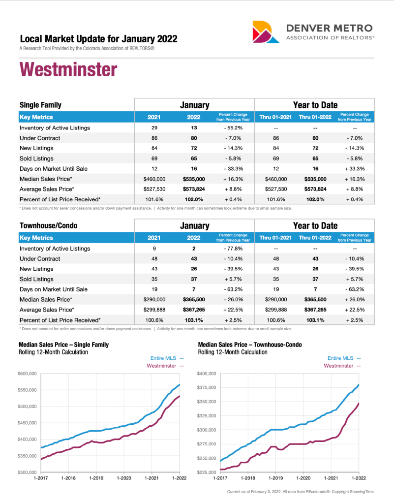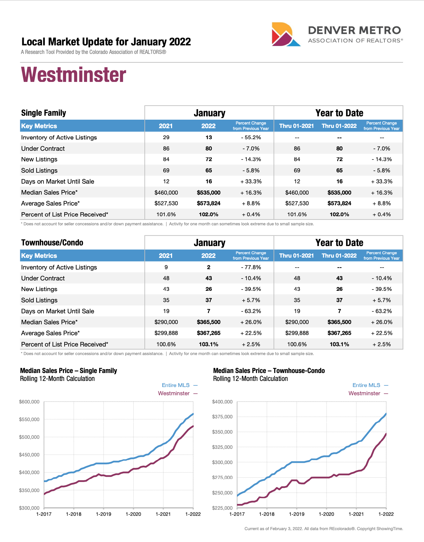 Here’s some real estate stats specifically for Westminster, Colorado!