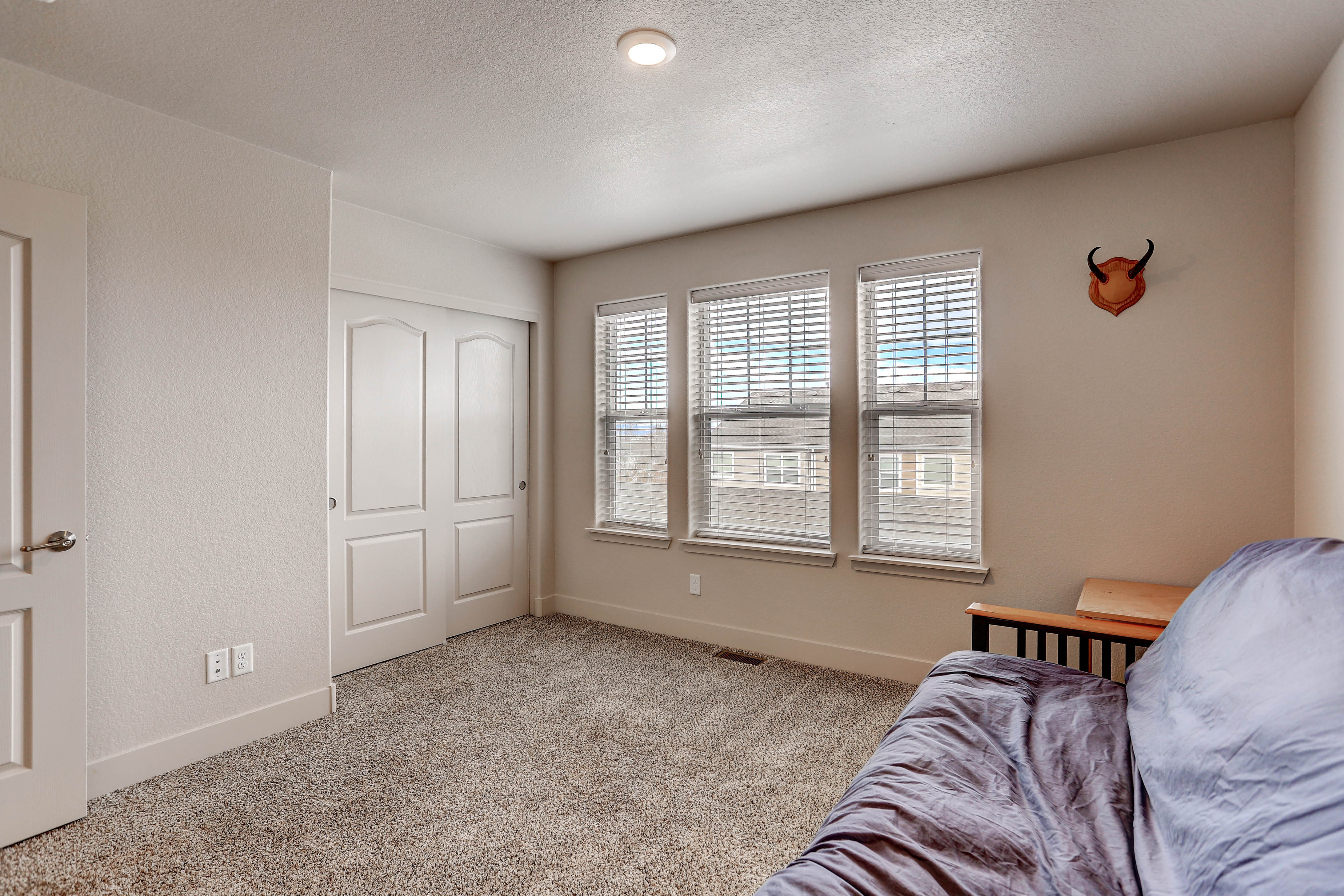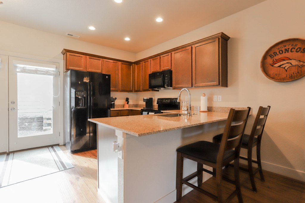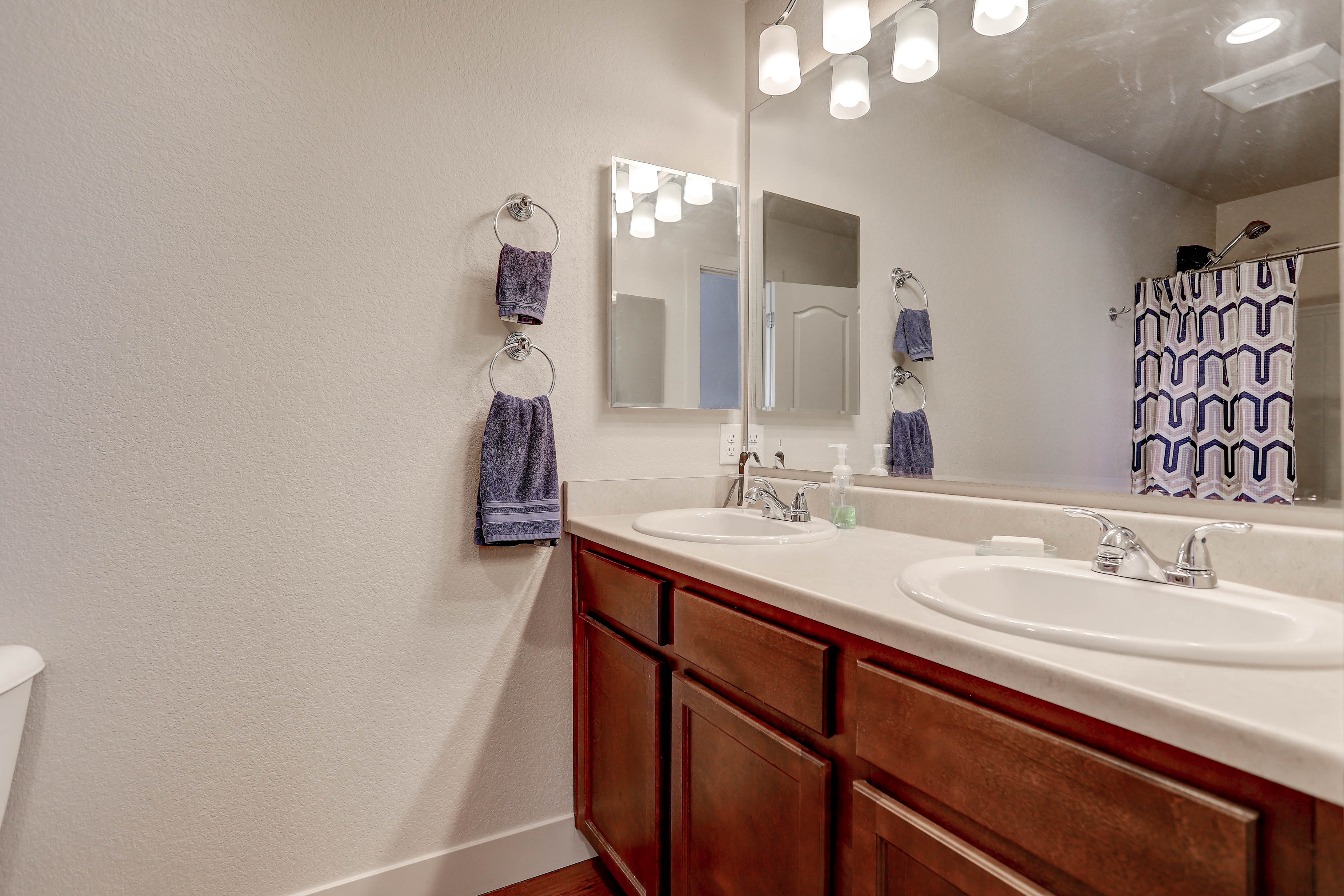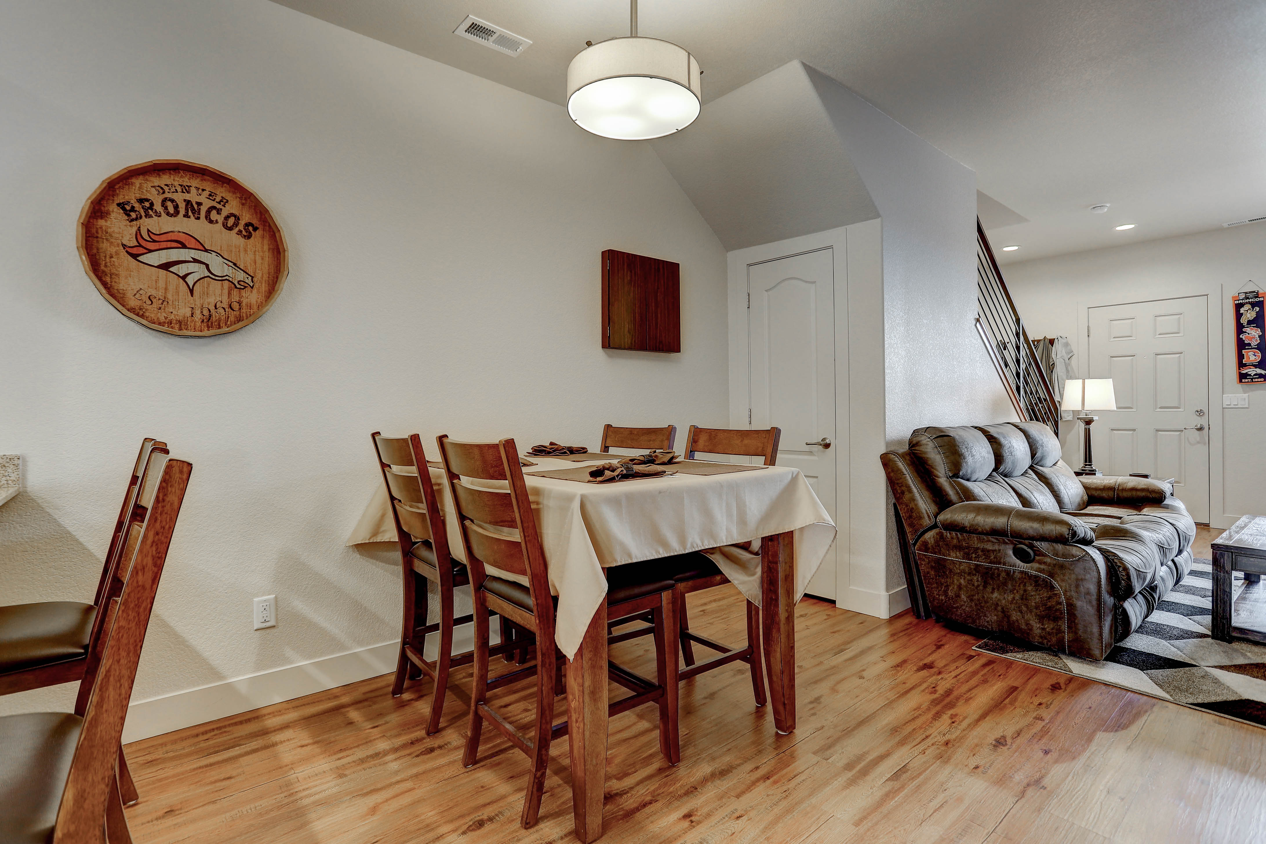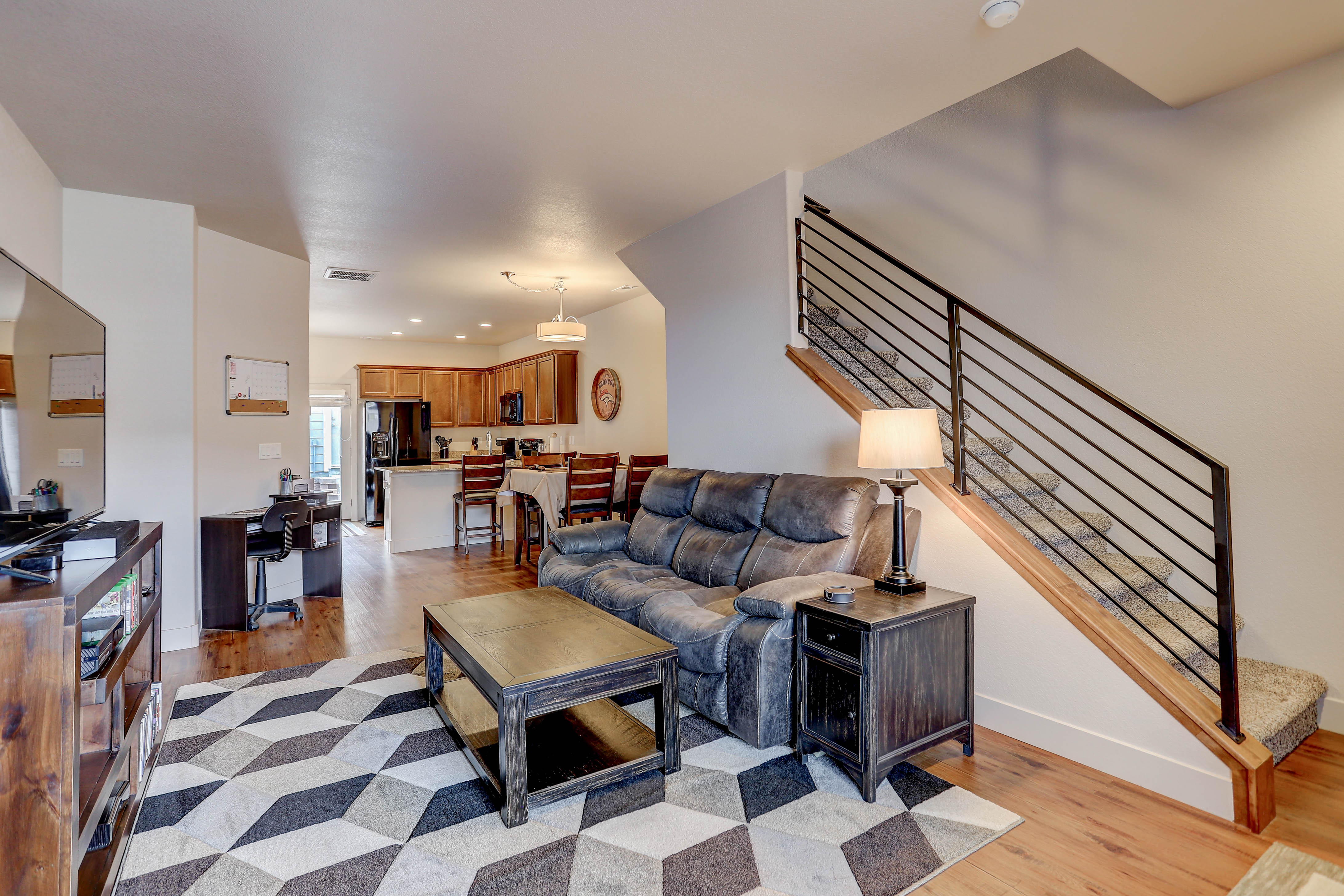 Step into this modern 5 year old townhome with 1216 square feet. The main level offers an open floor plan with tall ceilings, living room, dining area and kitchen with granite counters. Beautiful wood tone floors and cabinets throughout with a half bath on lower level for guests. Upstairs features two bedrooms, each with its own private bathroom. Convenient upstairs laundry area – washer & dryer are included. Private back patio area for grilling and convenient two car garage. Community park and ample visitor parking. Shopping and schools all close by!