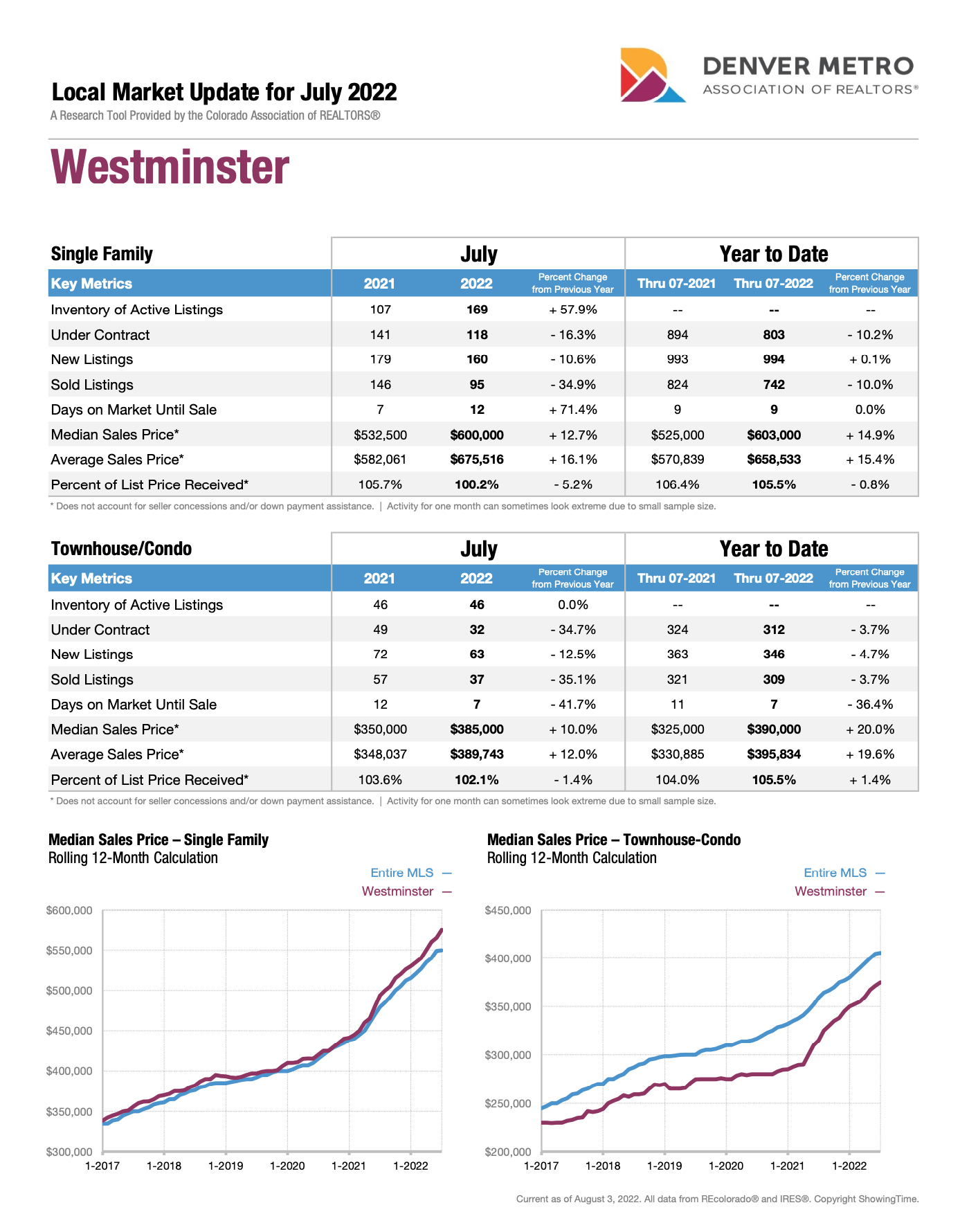Here’s some real estate stats specifically for Westminster, Colorado!