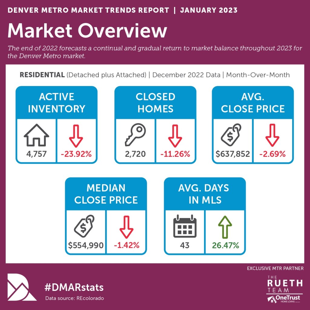 Here’s a quick overview of what happened during the month of December in the Denver real estate market: Remember, this compares to last month! – IT ALWAYS GETS SLOWER DURING THE HOLIDAYS! Yes, our market has changed to a more “normal” pre-pandemic market in Denver….Want to know more? Contact me!