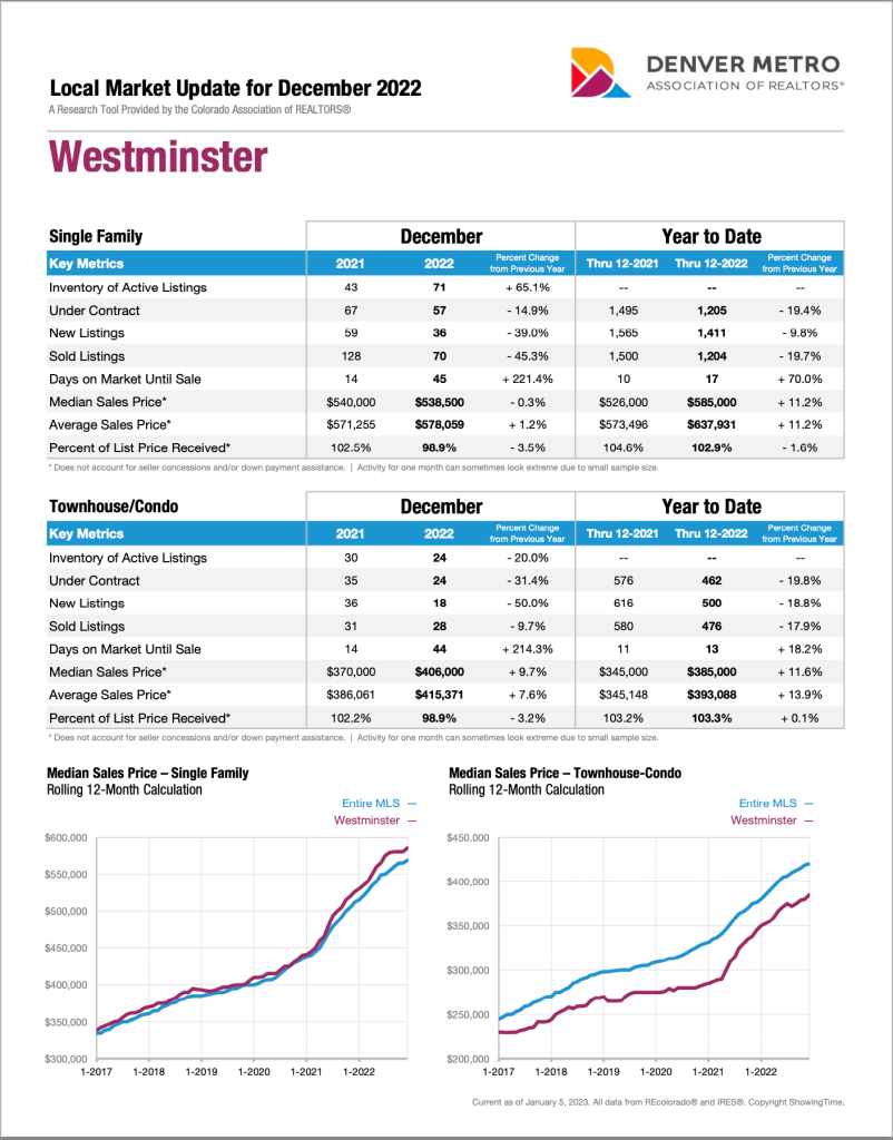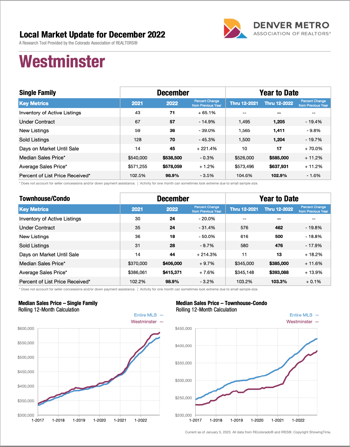 Here’s some real estate stats specifically for Westminster, Colorado!