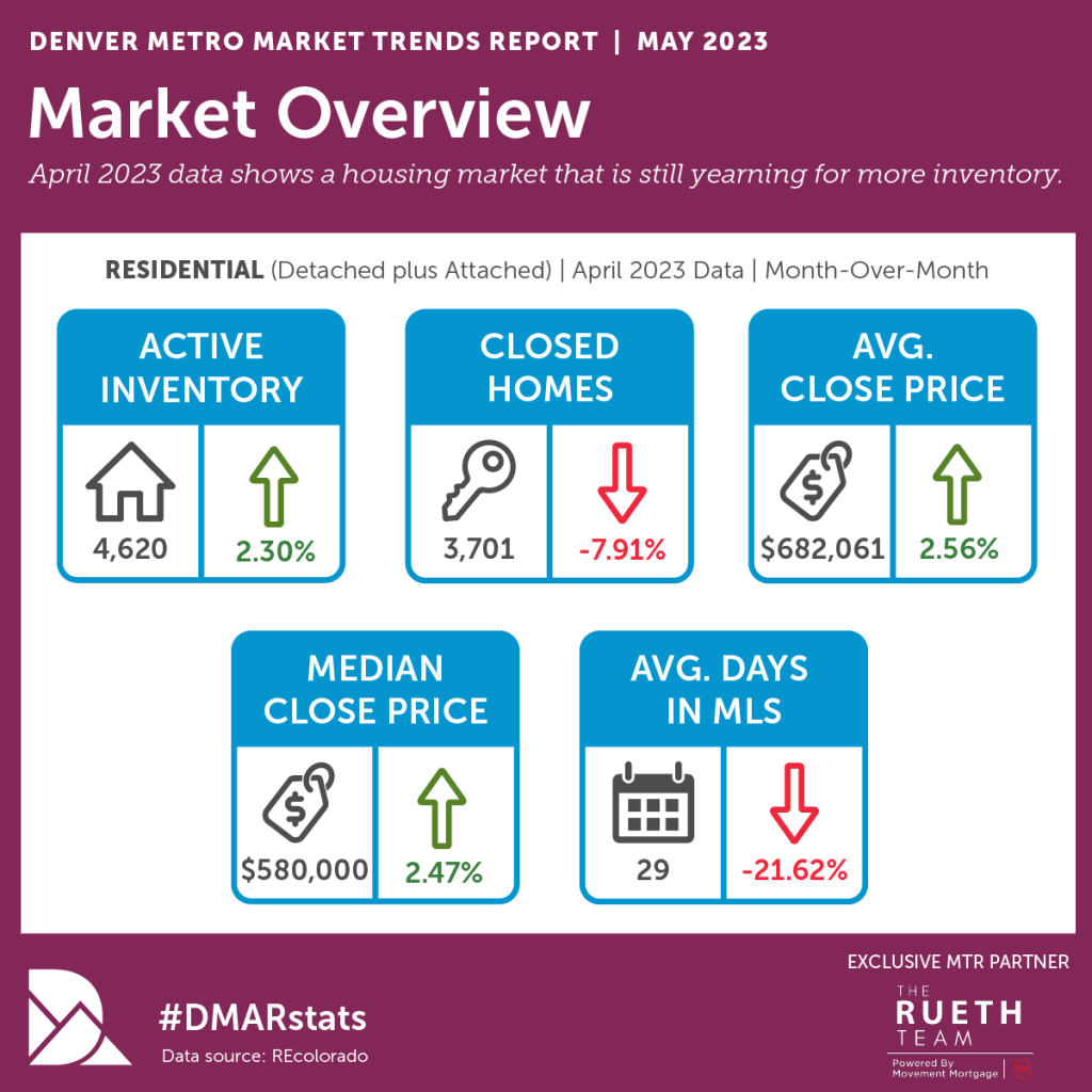 Here’s a quick overview of what happened during the month of April in the Denver real estate market: Remember, this compares to last month! Things a HAVE definitely heated up for the springtime market! We are BACK INTO MULTIPLE OFFERS and LOW INVENTORY….Want to know more? Contact me!