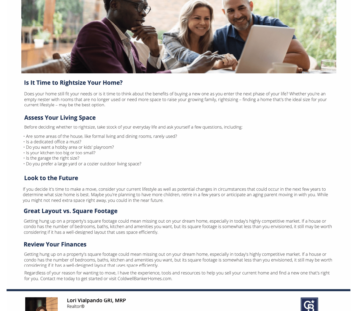 *** The Newest Reality Check: When is Rightsizing the Best Option***