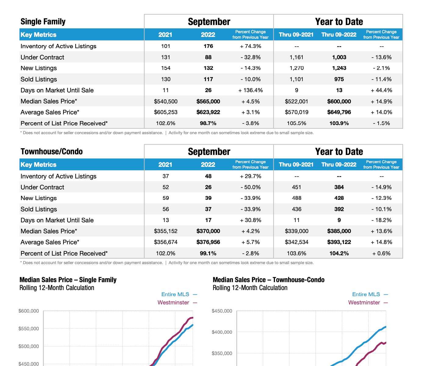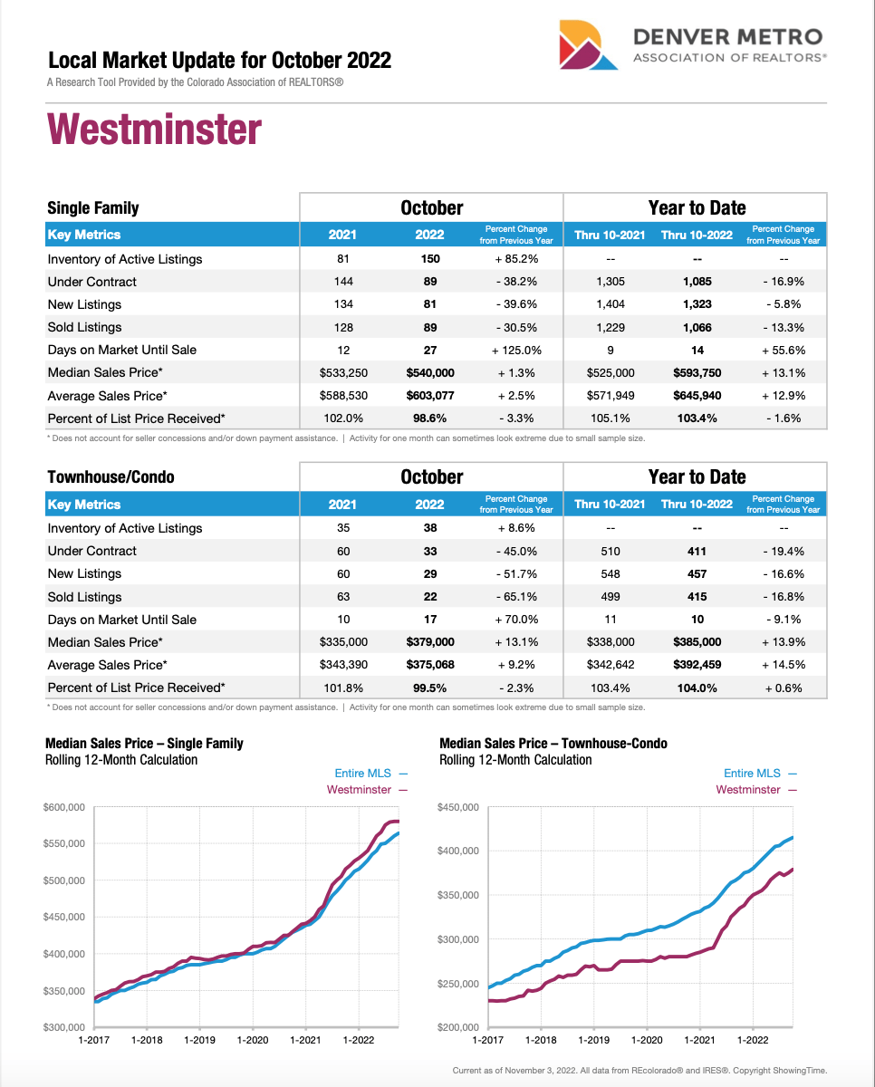 Here’s some real estate stats specifically for Westminster, Colorado! Reminder that these compare to same time last year, not last month. Our active inventory went up, and its taking a bit longer for homes to sell. HOWEVER, the average sales price in Westminster for Oct was up $603,077!!! Up 2.5% compared to same time last …